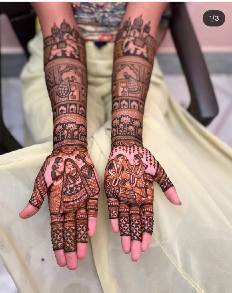A classic mehndi style featuring intricate paisleys, florals, and cultural motifs that beautifully reflect Indian heritage and timeless elegance.